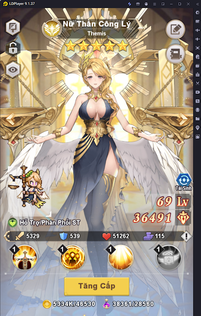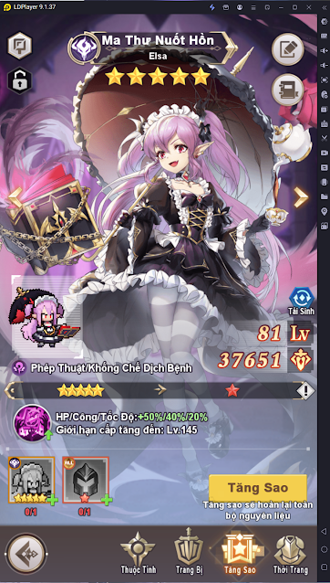 - Tăng cấp: Dùng vàng + Nước EXP để nâng chỉ số cơ bản.