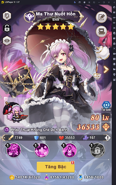 - Tăng bậc: Mở sau khi đạt cấp tối đa, cần Đá Giới + vàng + EXP, giúp mở khóa kỹ năng.